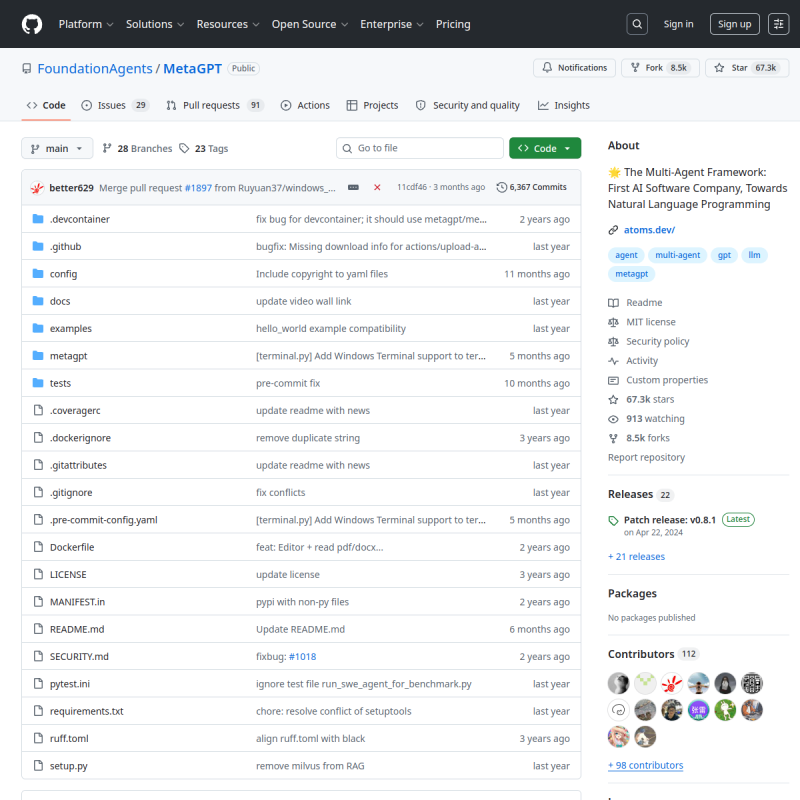 En 2024–2025, MetaGPT a gagné une forte traction dans la communauté open-source pour son approche structurée et ambitieuse de l’agentique. Le framework met l’accent sur la communication inter-agents, la spécialisation des rôles et la production de livrables cohérents (spécifications, code, tests, documentation). Il est particulièrement utilisé pour des prototypes avancés, de la génération de projets logiciels et l’exploration de nouveaux paradigmes de développement assisté par IA.